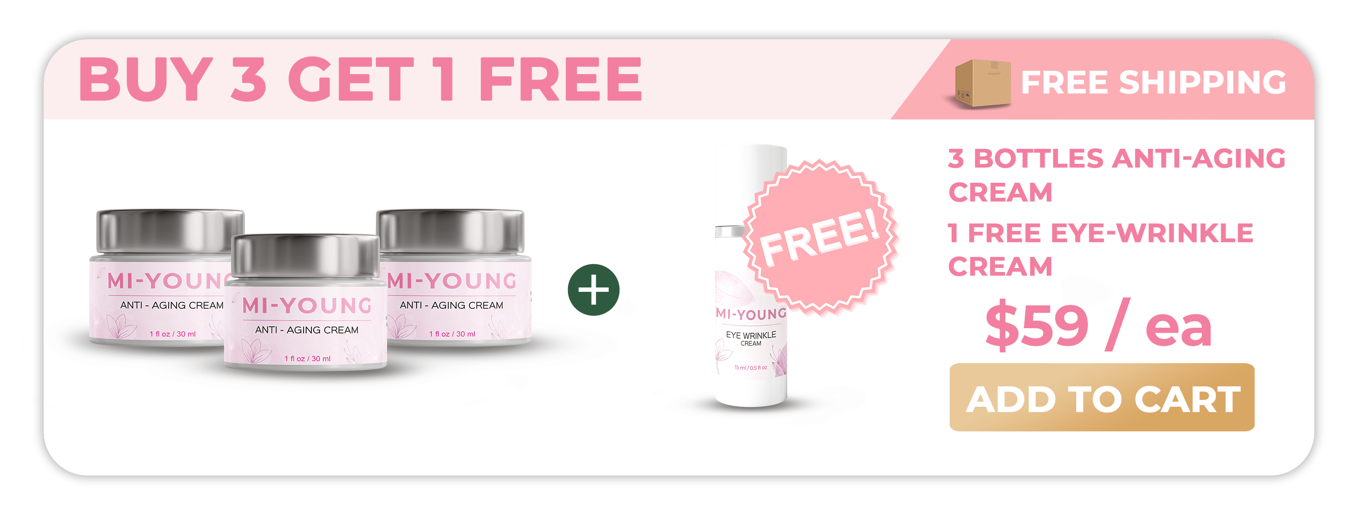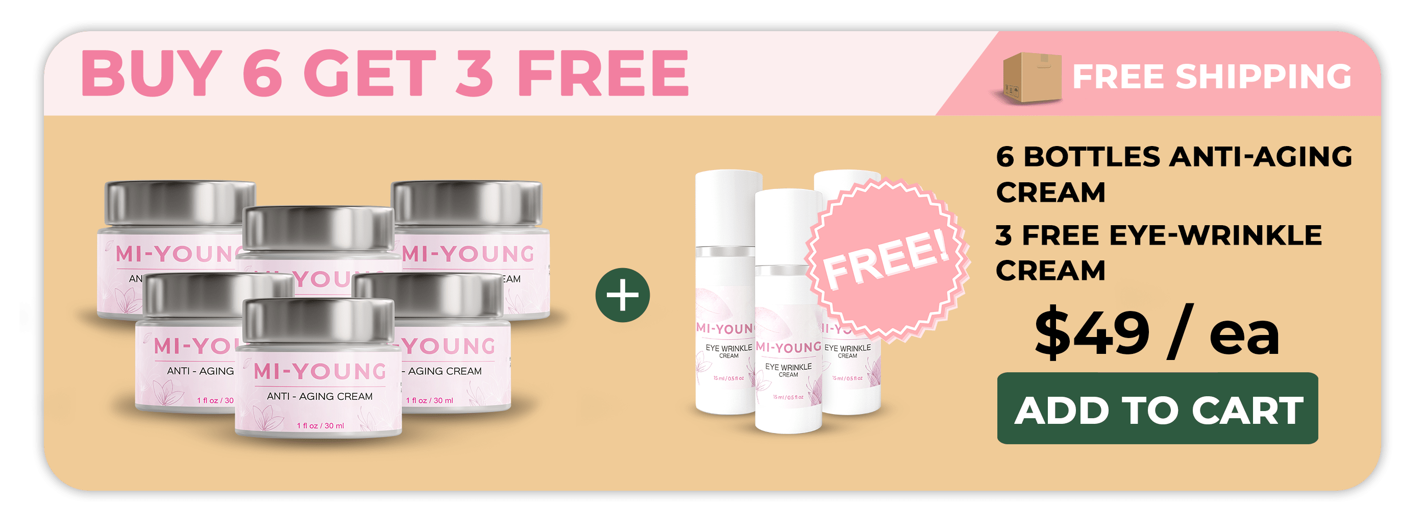 Every Discounted 3 bottle package of Anti-Aging Creams comes with the 1 Eye-Wrinkle Cream absolutely Free.